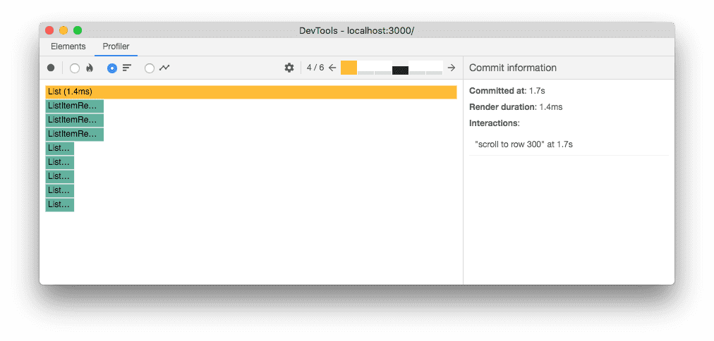 The above image shows that state.scrollOffset changed between commits. This is likely what caused the List component to re-render.